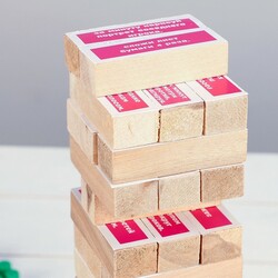 - Поочередно вытягивайте бруски из разных частей башни так, чтобы она не упала.