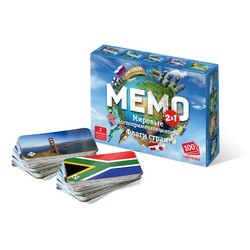 Настольная игра Мемо 2в1 «Мировые достопримечательности» и «Флаги стран», 100 карт