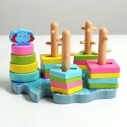 Пирамидка логическая "Фигуры", окрас глянцевый, 4 шт. на основании
