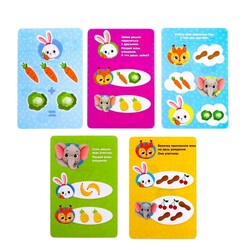 - Используйте для игры карточки с заданиями, обучайте ребёнка счёту, развивайте его мышление!