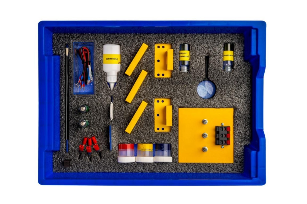 • Кисточка, черная трубка, кювета, магниты, линза в оправе, световоды, набор гуашей