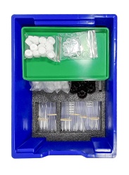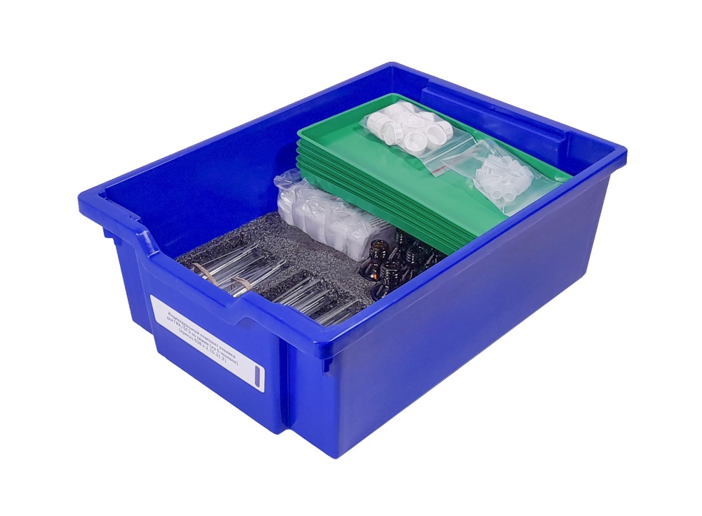 Набор укомплектован в пластиковую систему хранения с прозрачной пластиковой крышкой на защелках для обеспечения наблюдения за содержимым.