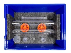 Набор реактивов укомплектован в пластиковую систему хранения с прозрачной пластиковой крышкой на защелках для обеспечения наблюдения за содержимым.