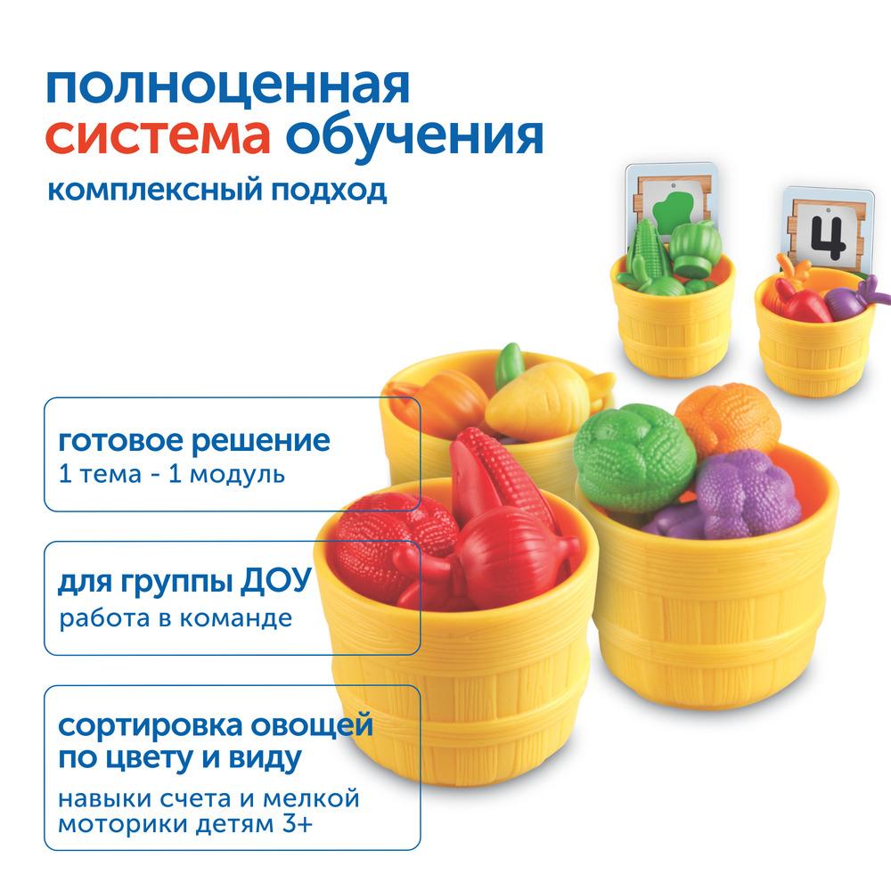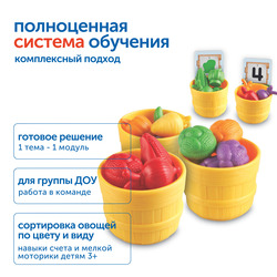 • Сортировать овощи по цвету и виду, используя карточки и миниатюрные корзиночки.