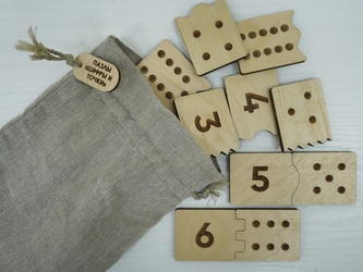Классическая игра-пазл в математической тематике. Задача детей: сопоставить количество и цифру. Игра предполагает только один правильный ответ: линия разреза уникальна и показывает детям на ошибку в соединении деталей.